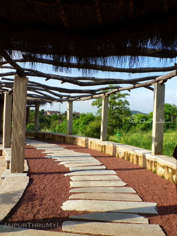 The boardwalk made from Jaisalmer stone snakes through the park and leads one to the viewing deck – The Longhouse or Machaan. There is another viewpoint called Maidan Lookout. Here is a picture of the path that leads to Maidan Lookout.