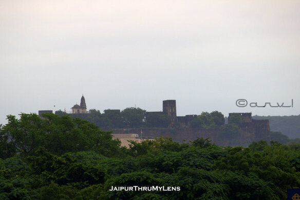 While one is seated, it is hard to ignore the beautiful view of the Moti Dungari Fort.