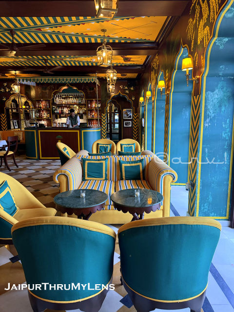 Dutch designer Marie-Anne Oudejans who designed Bar Palladio in Jaipur, has designed the interiors of Polo Palladio. The colors yellow, green, and maroon dominate the interior theme of the bar along with patterns of stripes and chevrons.