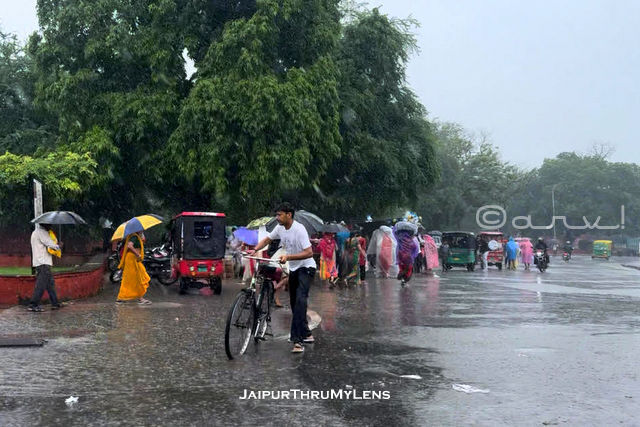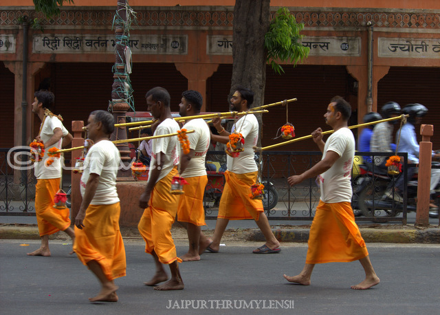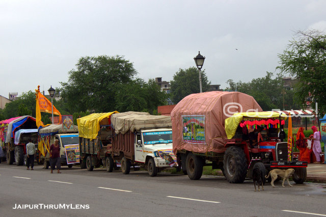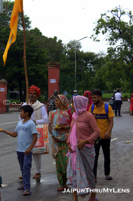 Diggi Kalyan Yatra takes place in the month of Savan or monsoon, as per the Hindu or Indian calendar. Usually, it falls in July or August, every year. These are the months that receive a lot of rain, also called, monsoon. Here is a picture of Yatra during the rains in Ramniwas Garden near Albert Hall Museum.