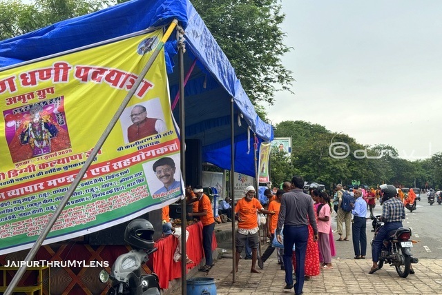 Many organisations and individuals set up stalls to provide food and water to devotees doing the Padyatra. Often, many religious bodies often collect donations from people to fund such set ups. Such a set up provides support to Padyatris walking to Diggi town on foot. Here is a picture of refreshment booths set up for devotees walking on foot to Diggi.